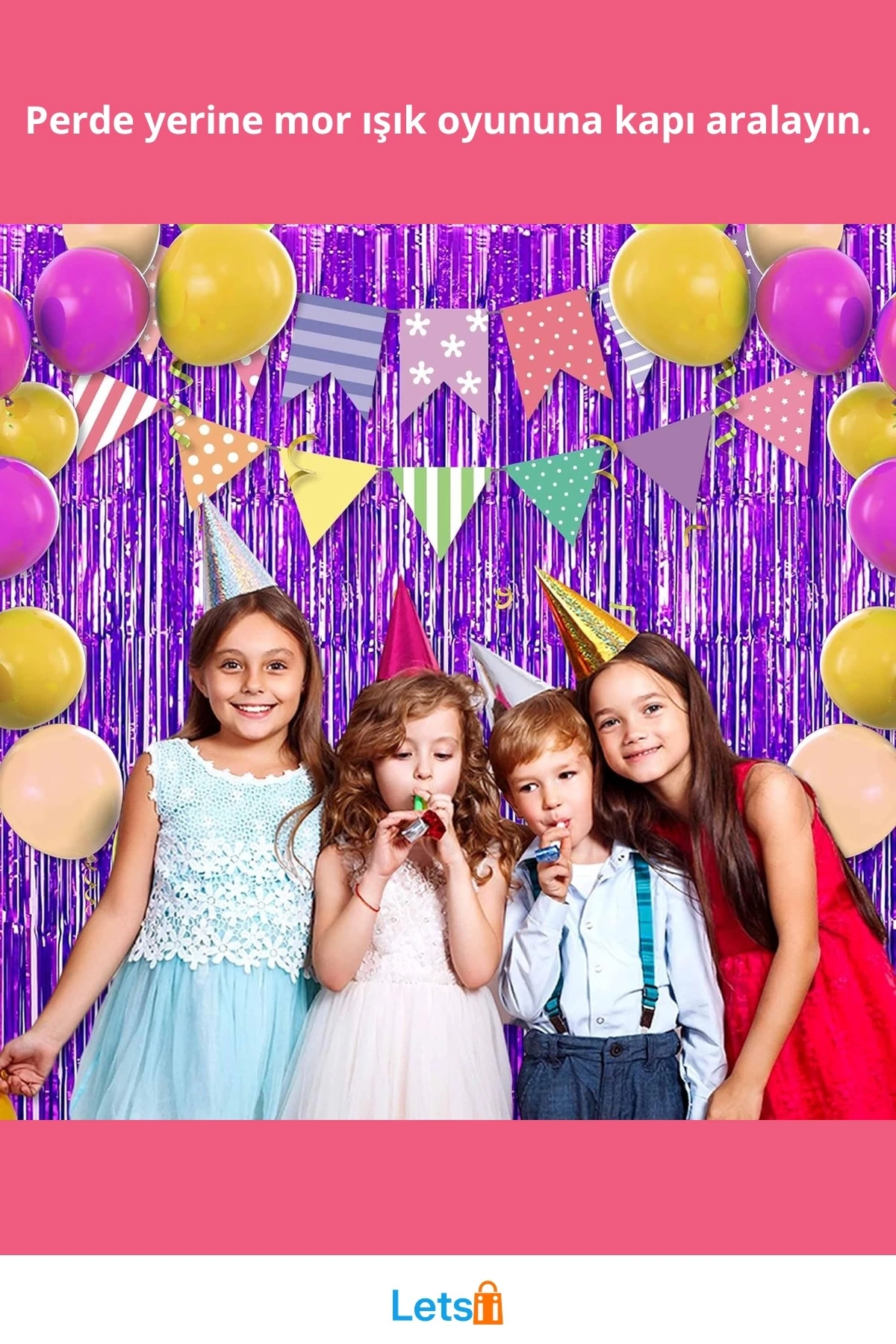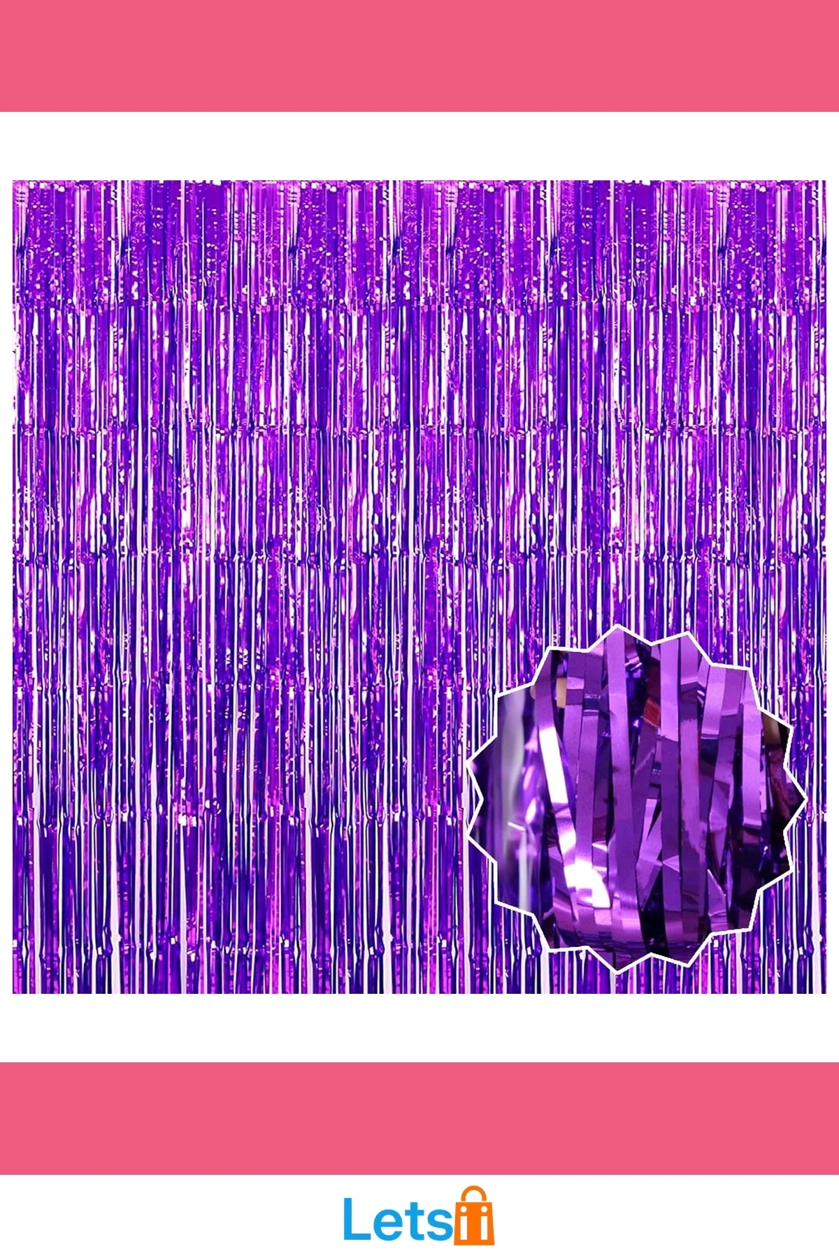 Mor Metalize Saçaklı Arka Fon Perde 1x2 metre Parti Dekorasyonu