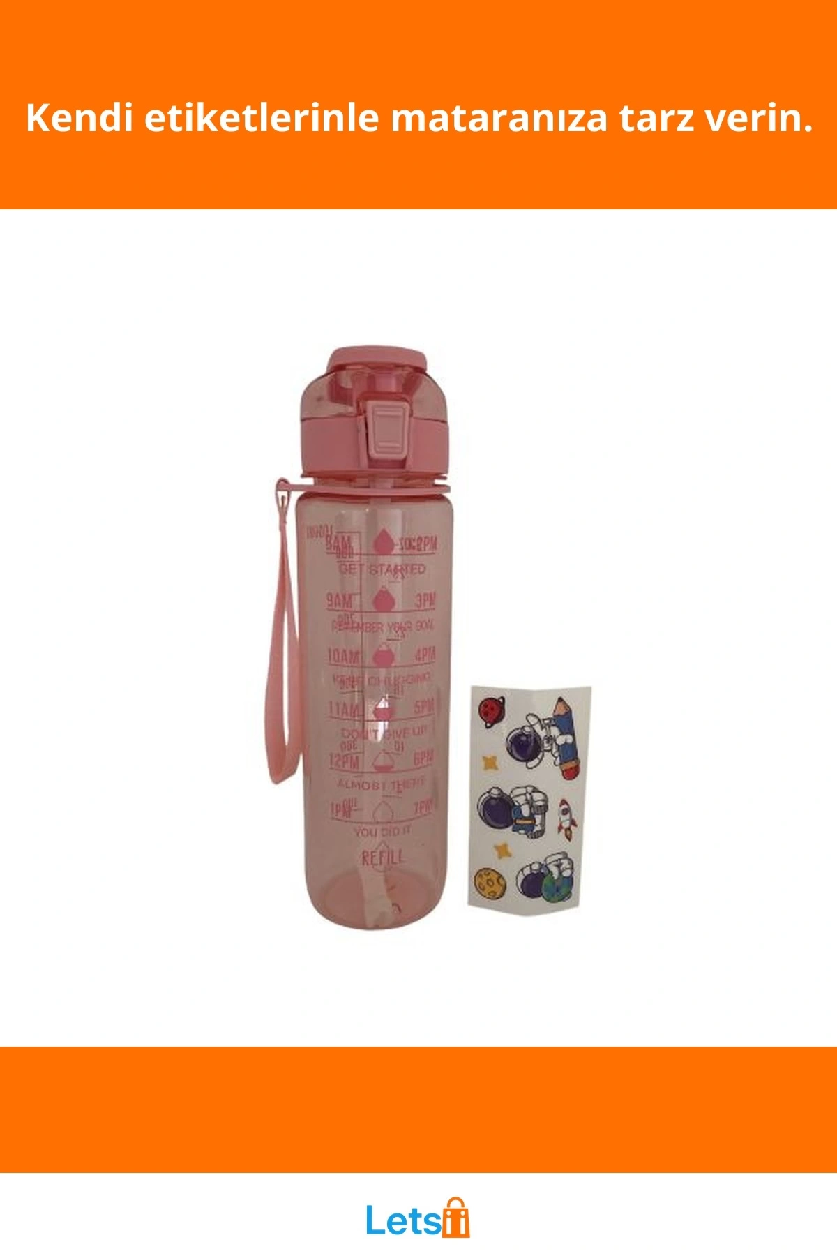 2 Litre Günlük Motivasyon Su Matarası İlham Verici Tasarım