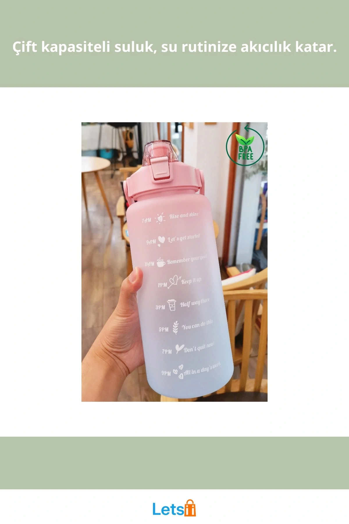 Motivasyonel Su Matarası 2000 ml ve 900 ml Pipetli