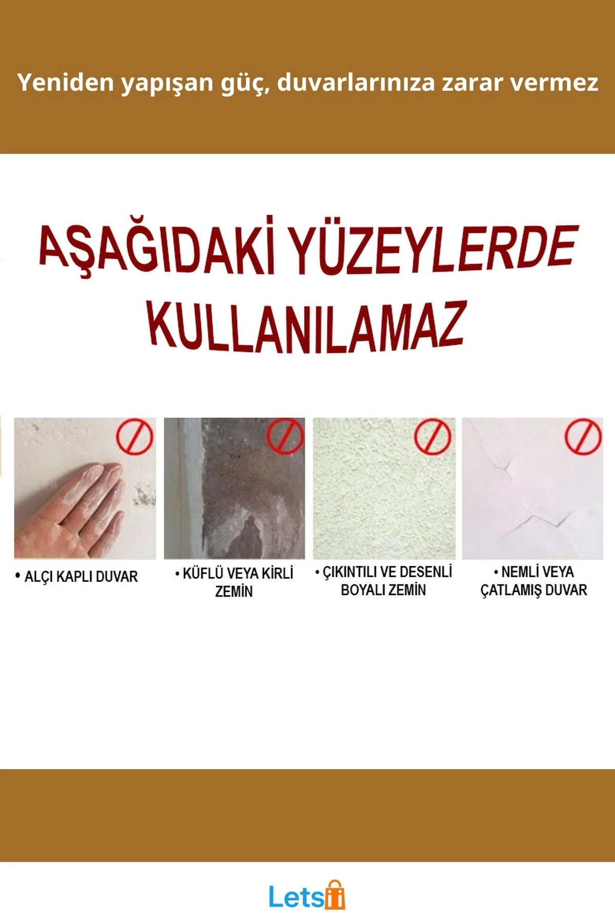 Duvarlarınıza veya eşyalarınıza zarar vermez, güvenle kullanabilirsiniz.