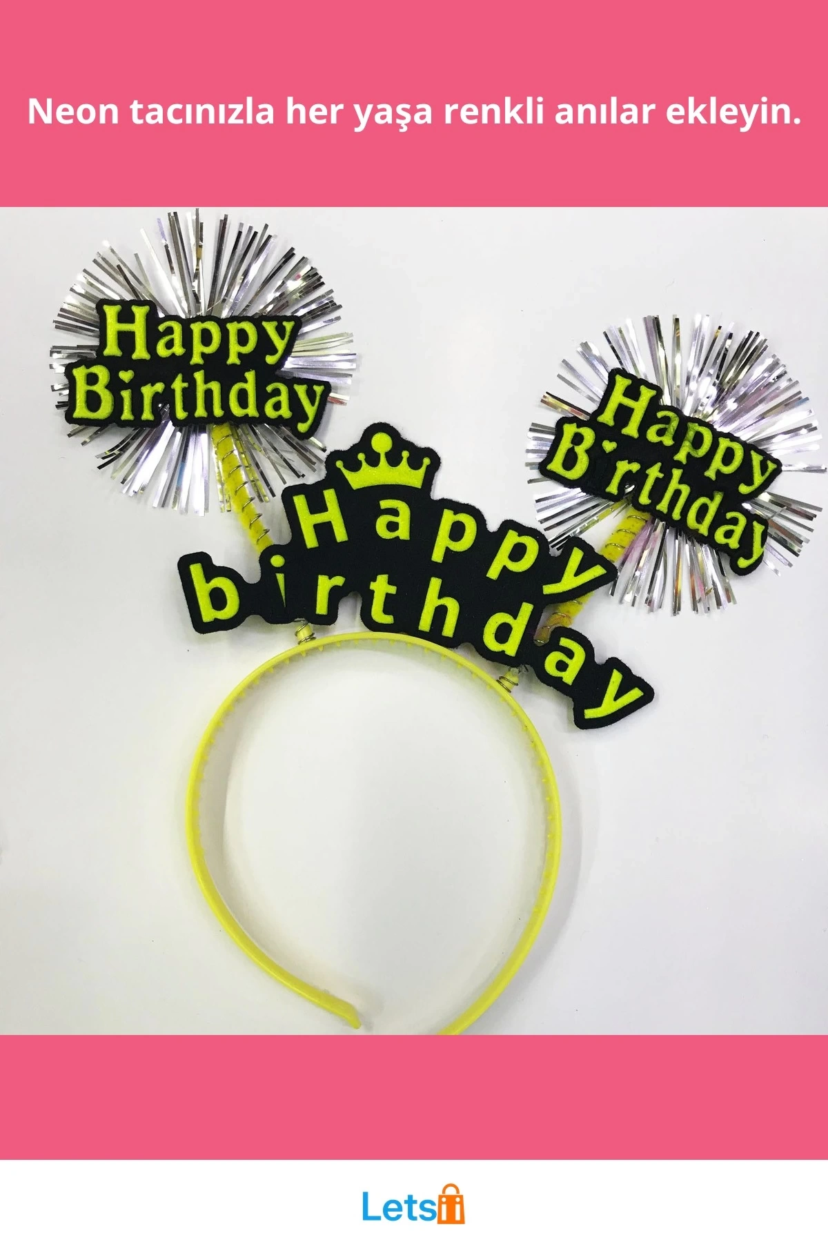 Bu ürün, 12 adet renkli neon doğum günü tacı içerir.