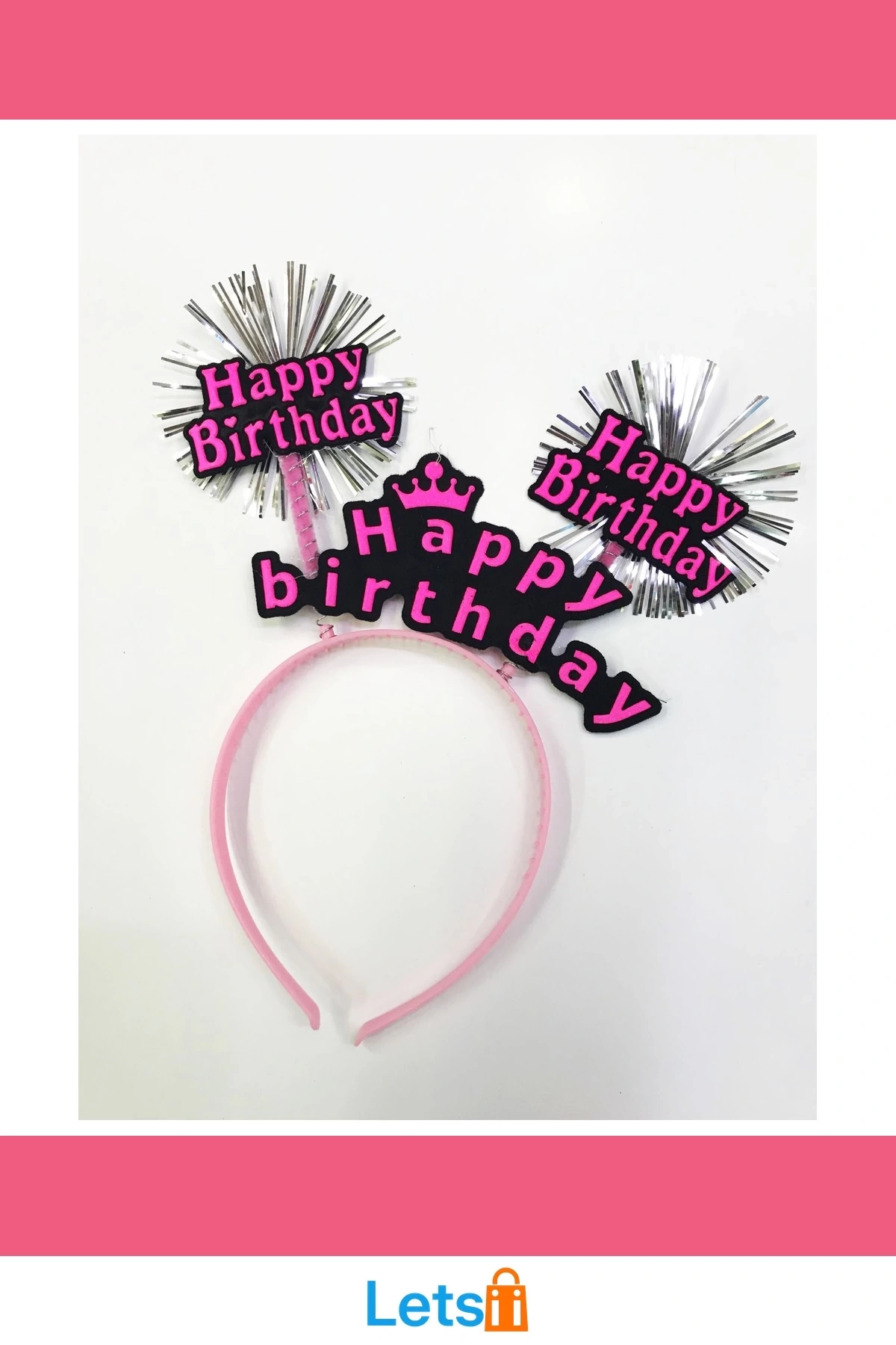 Pembe Siyah Happy Birthday Simli Kuşak Kemer