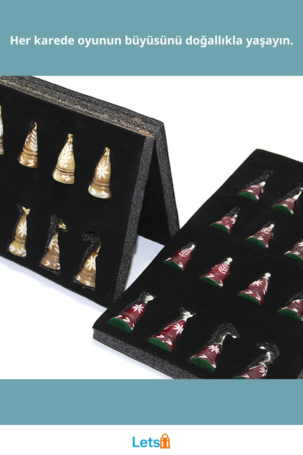 Klasik satranç taşlarından farklı, şık renk kombinasyonları ile dikkatleri üzerine çeker.