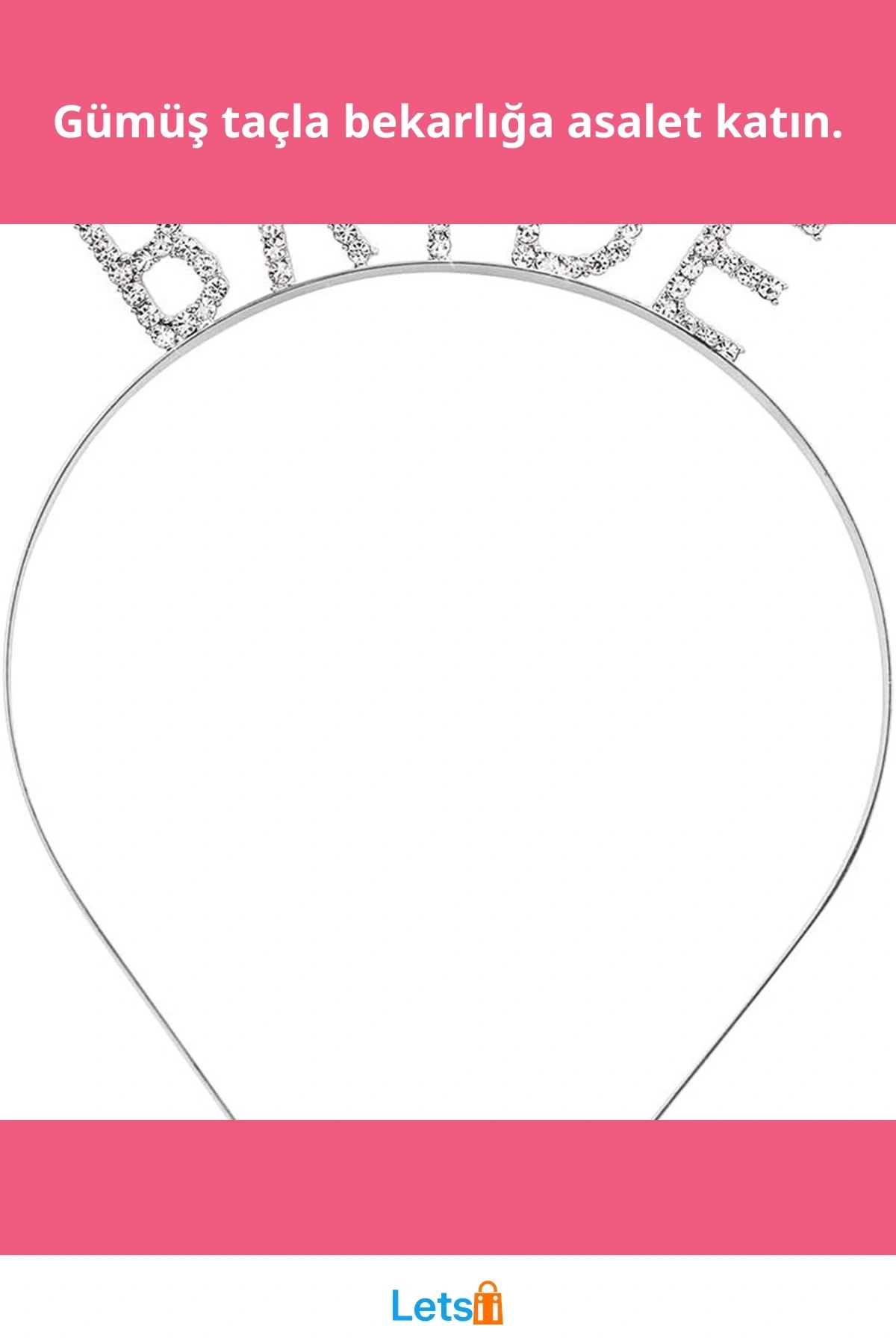 Gümüş Renk Alyanslı İtalik Yazı Bekarlığa Veda Bride Taç