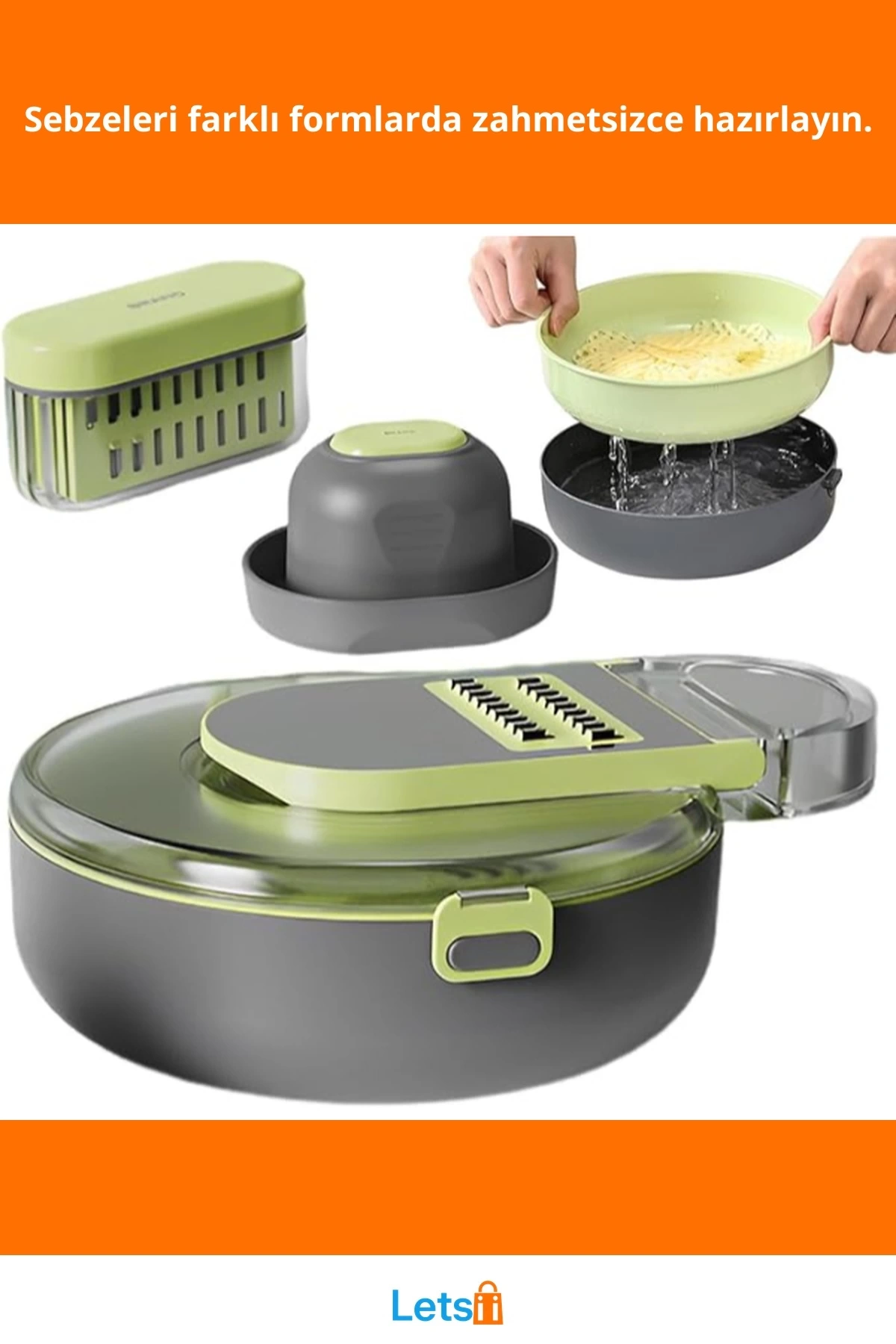 Çok Fonksiyonlu Rende Seti, sebzelerinizi hızlıca hazırlamanıza yardımcı olur.