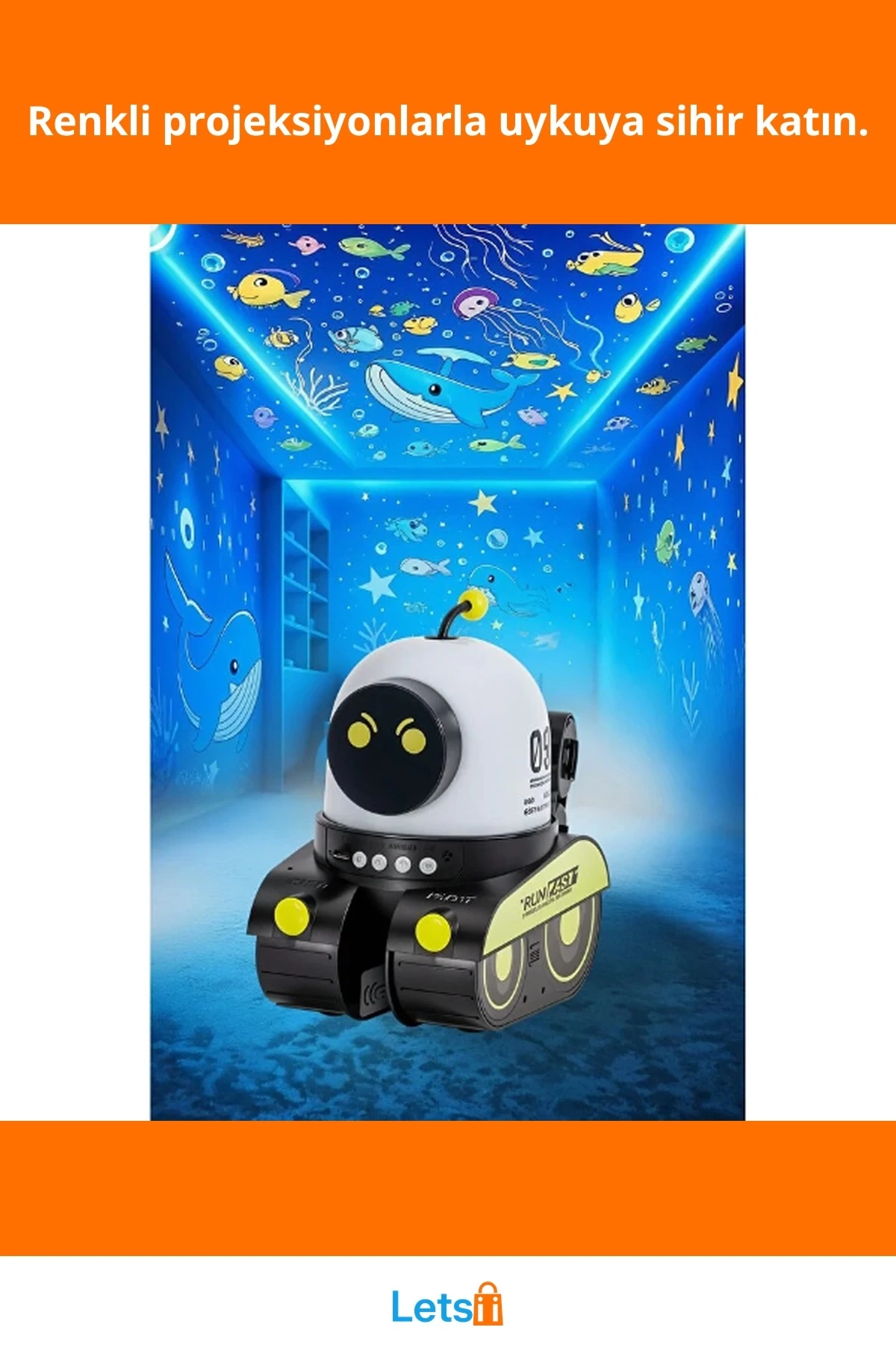 Robot tasarımlı projektör gece lambası, çocuklar için harika bir uyku arkadaşı!