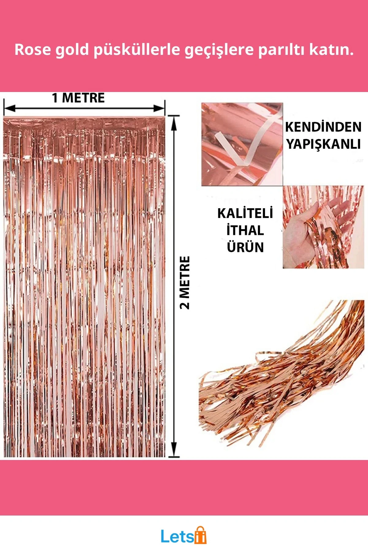 Kendinden Yapışkanlı Rose Gold Metalize Püsküllü Masa Eteği 75 x 275 cm