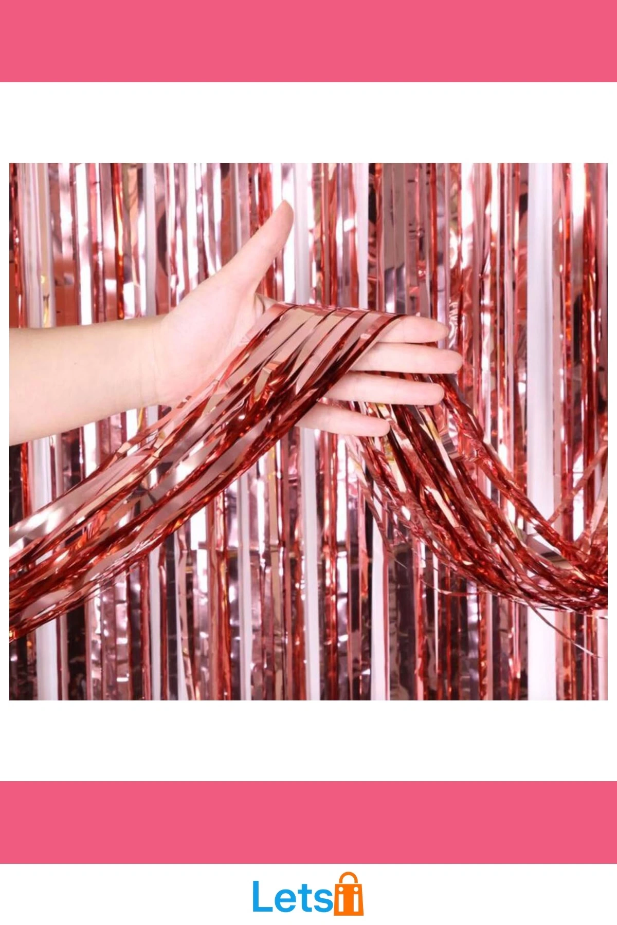 Kırmızı Metalize Parlak Saçaklı Perde 1x2 metre