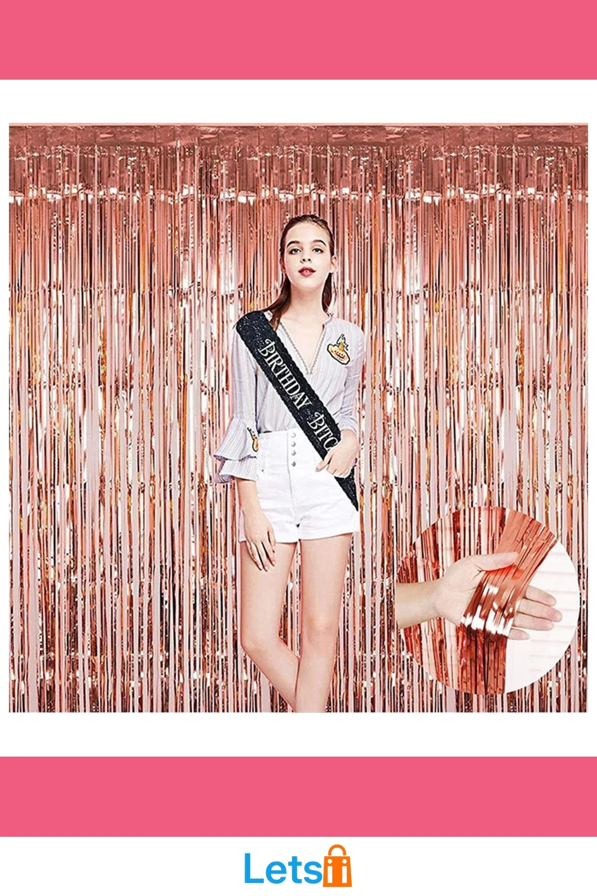 Rose Gold Püsküllü Kapı Perdesi 1x2m Şık Dekoratif