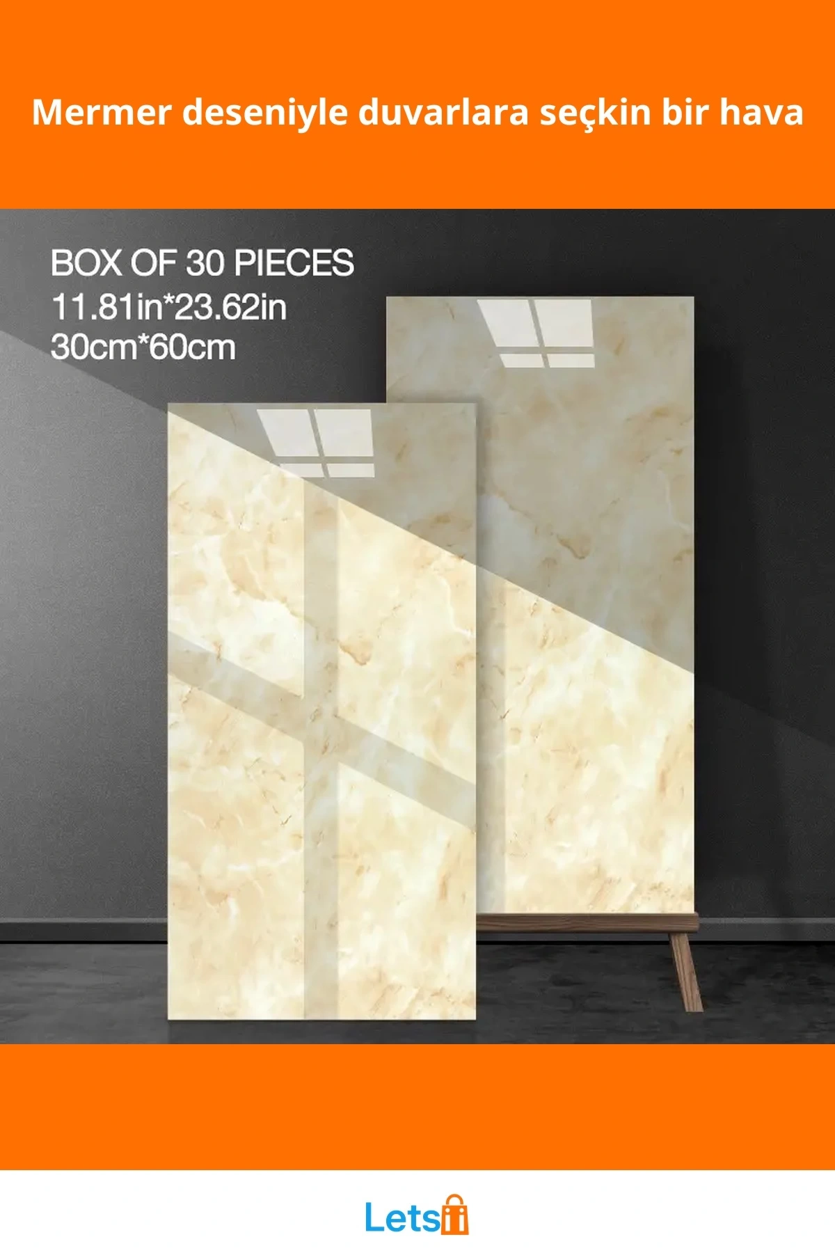 Sarı Mermer Desenli Kendinden Yapışkanlı Alüminyum Plastik Duvar Stickerı 60cm x 30cm