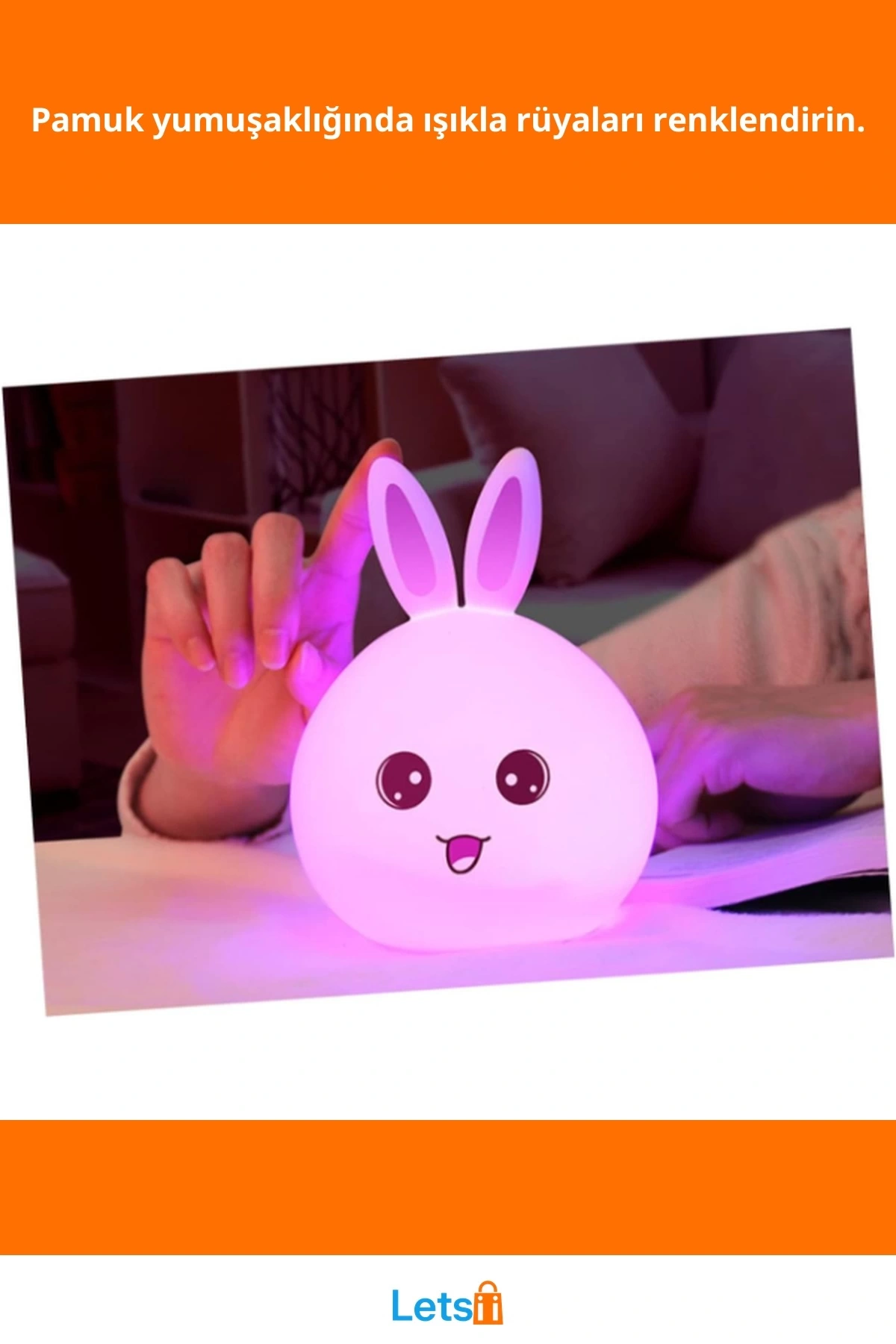 Sevimli tavşan tasarımına sahip bu gece lambası, çocuklar için mükemmel bir arkadaş!
