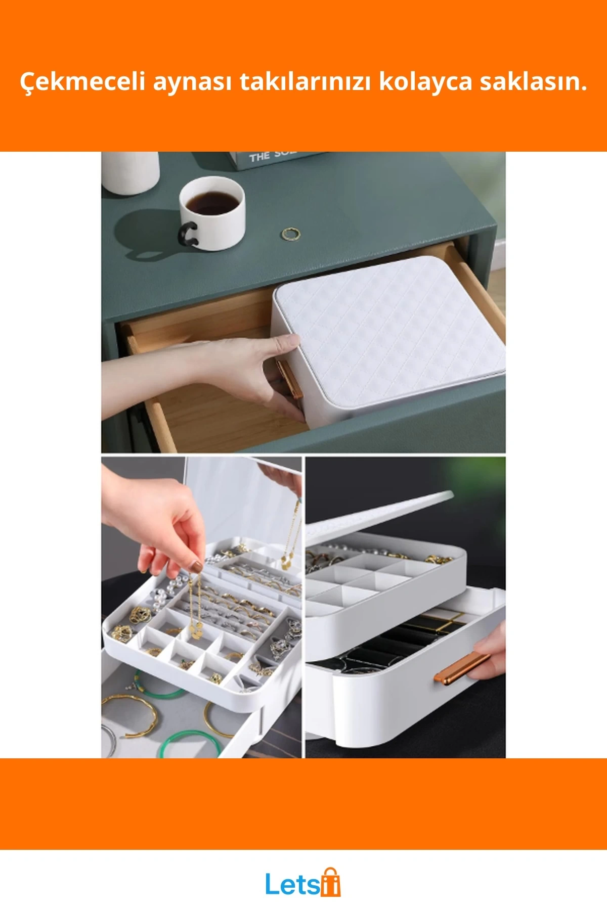 Ek depolama alanı sunan çekmeceli yapısı ile büyük takılar için ideal.