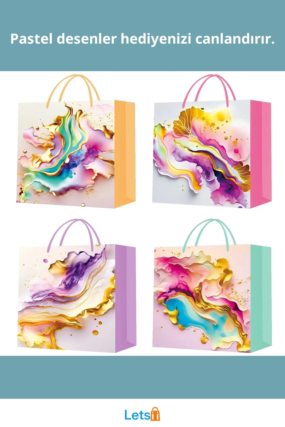 Farklı pastel renklerdeki motifler görsel olarak ilgi çeker.