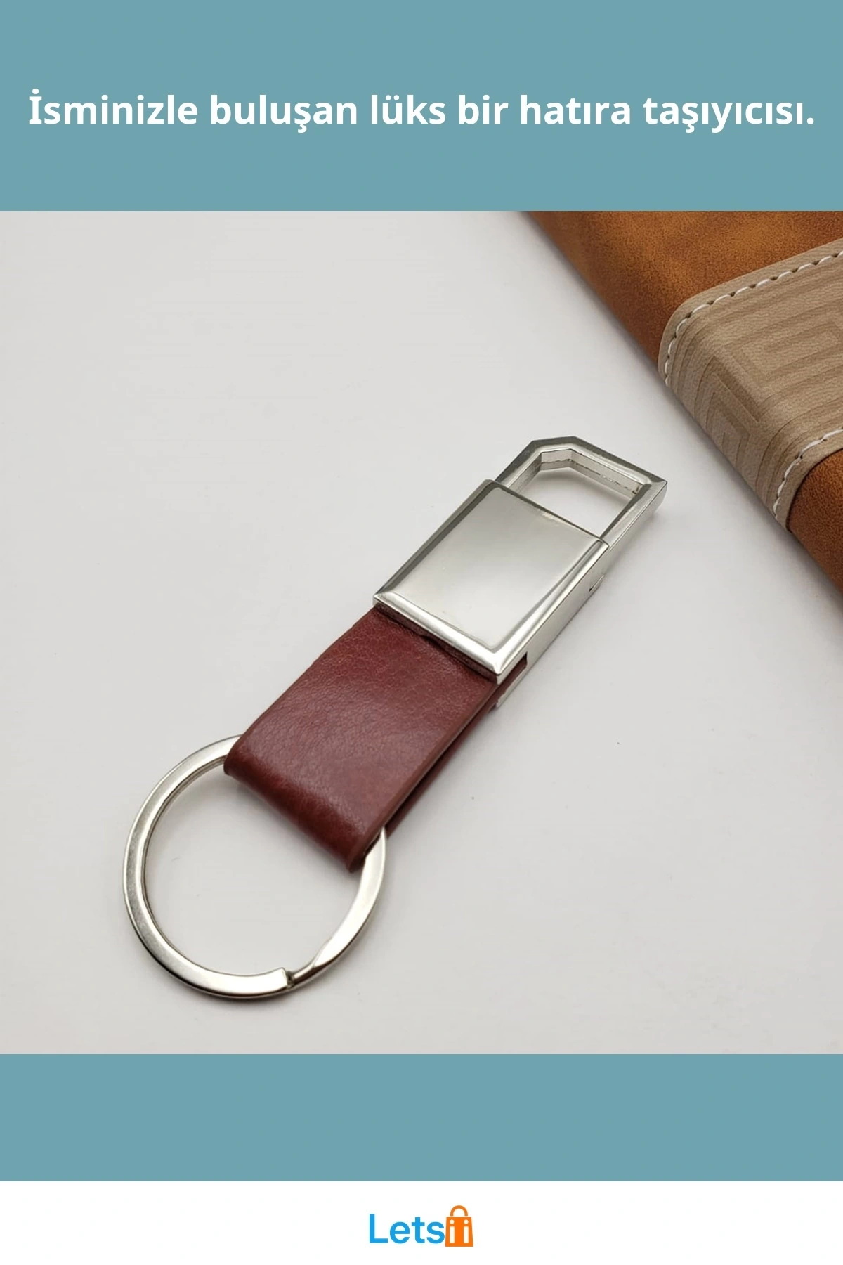 Şık Deri Metal Anahtarlık 8 cm Kişiye Özel Promosyon