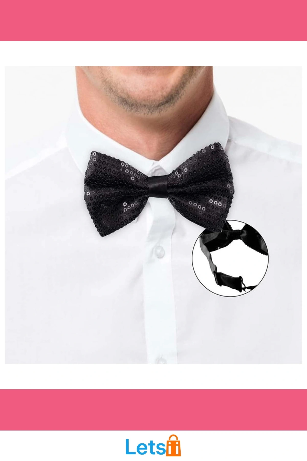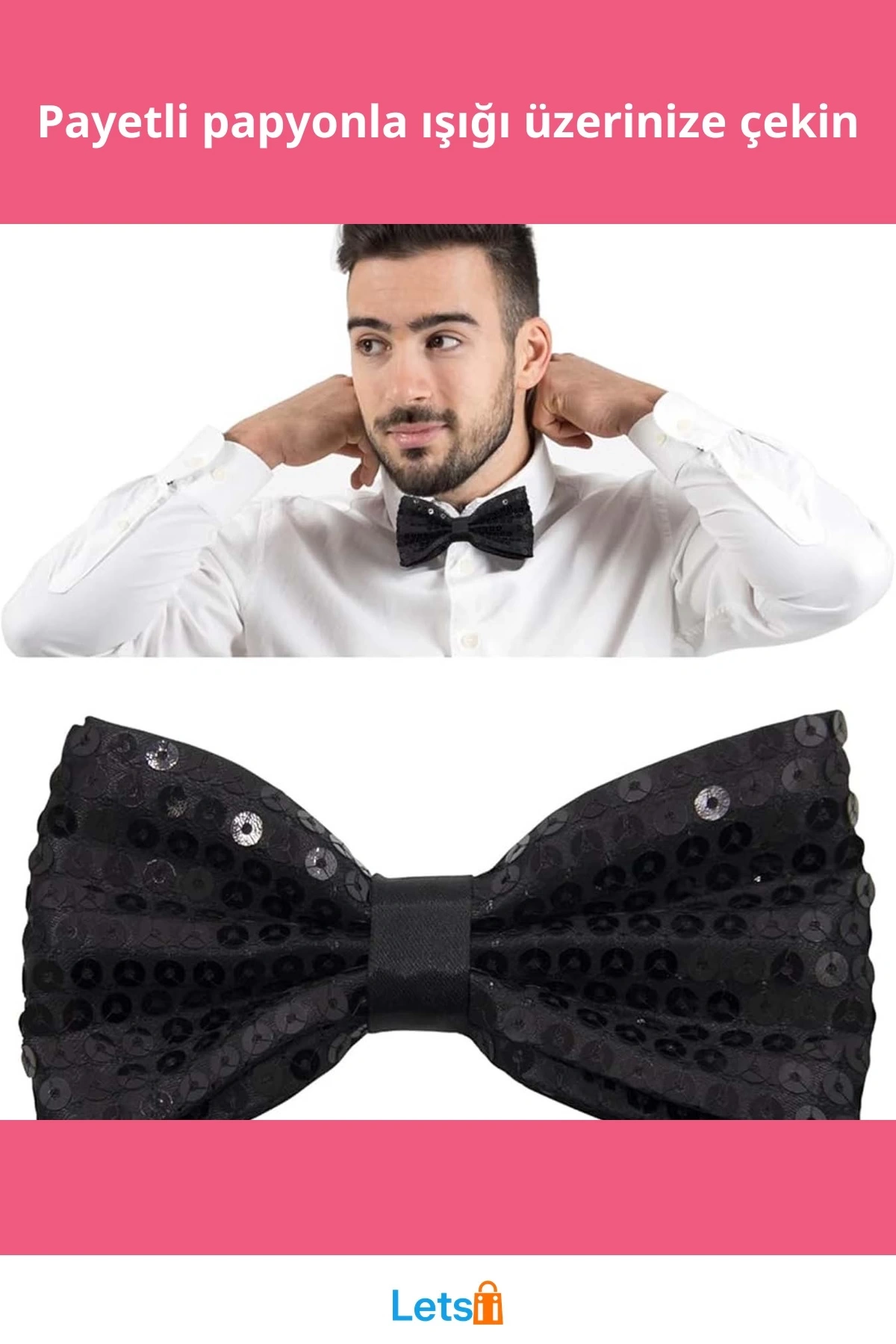 Siyah payetlerle kaplı bu papyon, dikkat çekici bir görünüm sunar.