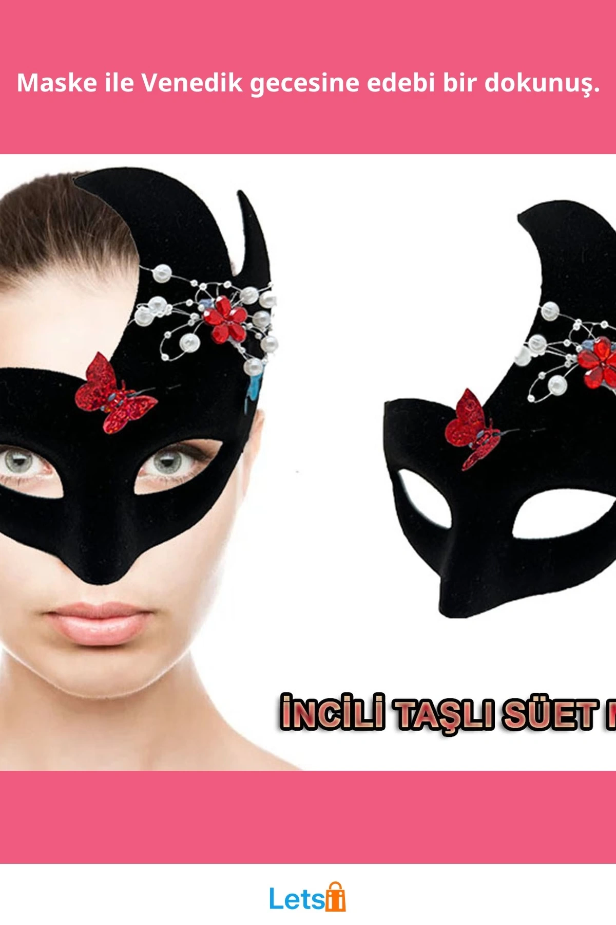 Siyah incili taş süslemeleri, maskenize eşsiz bir zarafet katıyor.