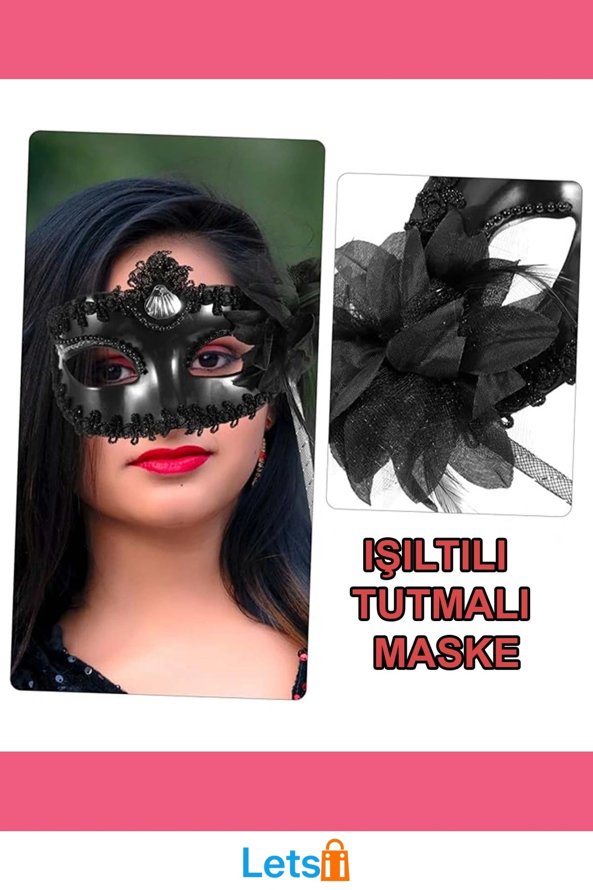Siyah Işıltılı Tutmalı Fotoğraf Çekimi Maskesi