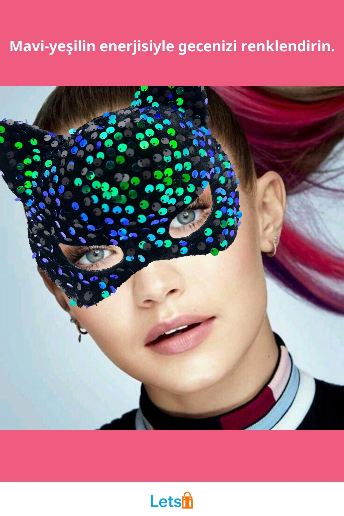 Her pakette 1 adet Siyah Kadife Mavi Yeşil Parti Maskesi bulunur.