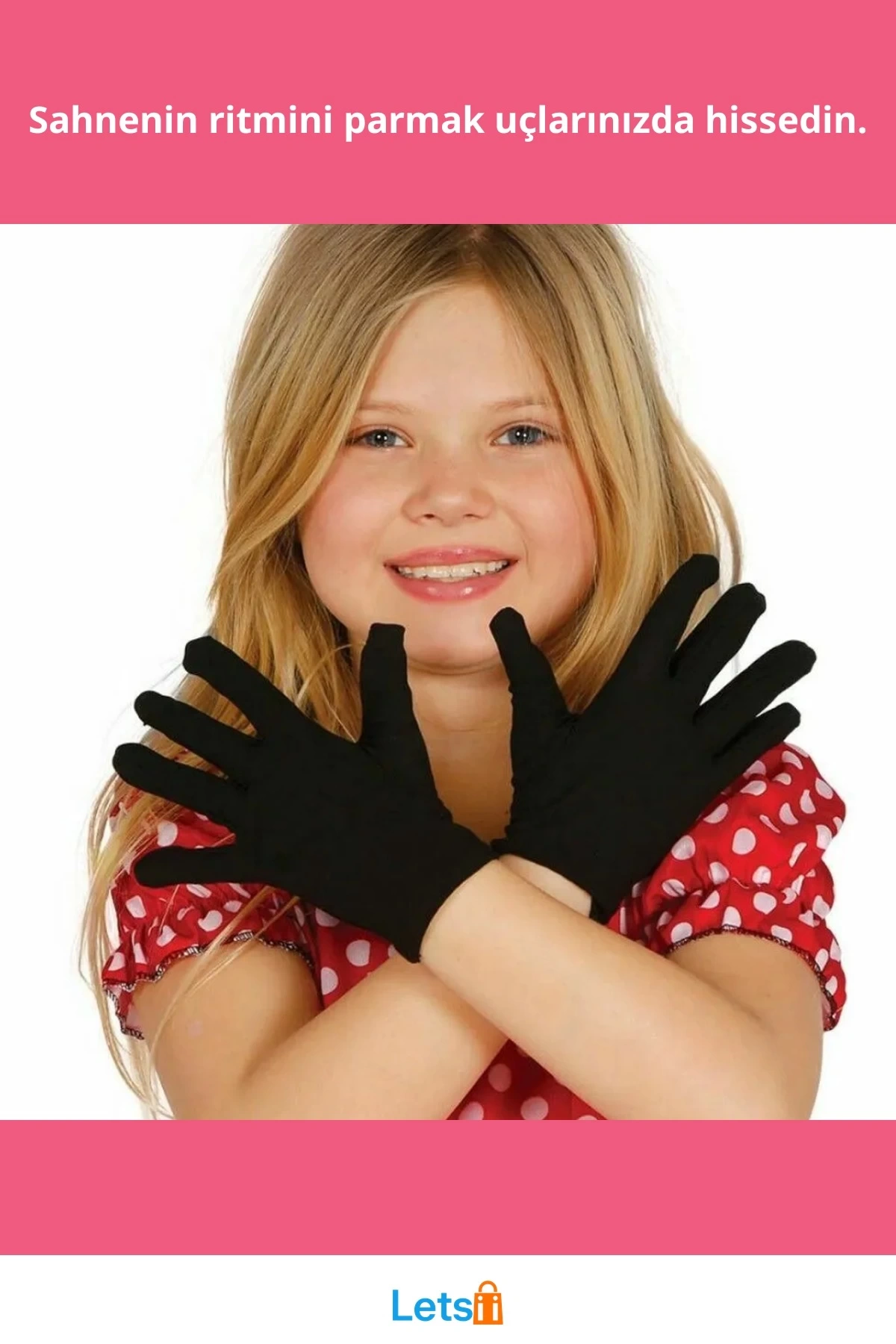Uzun Siyah Puantiyeli Yetişkin Tül Eldiven