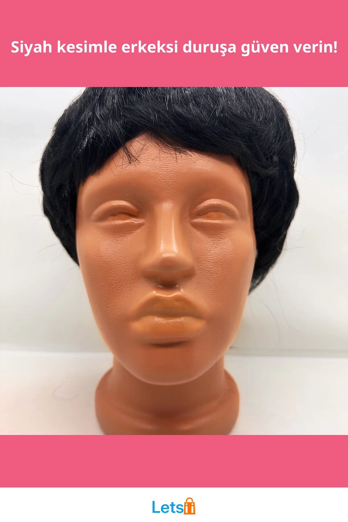 Siyah Renk Kısa Kesim İç Astarlı Erkek Peruğu