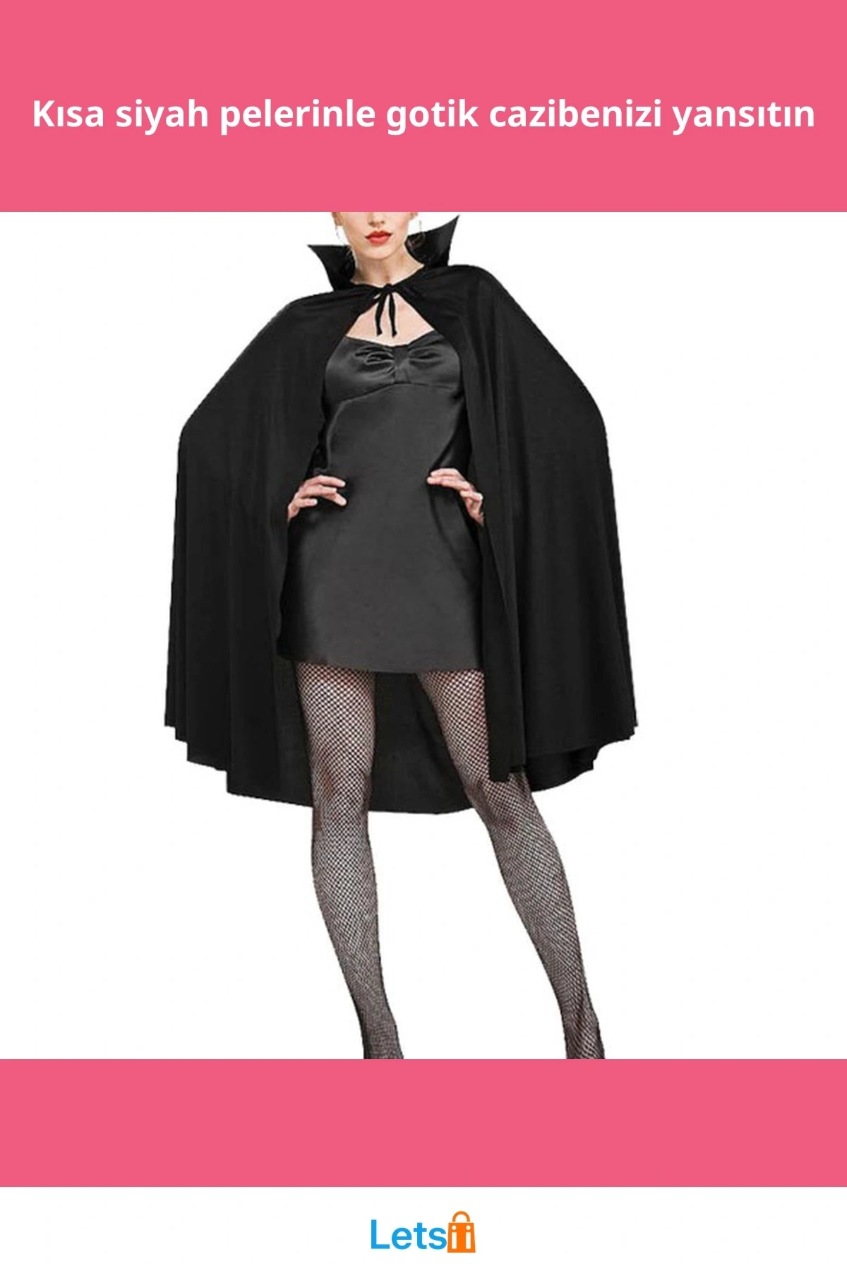 Siyah Yakalı Yetişkin Pelerin Şık Kostüm