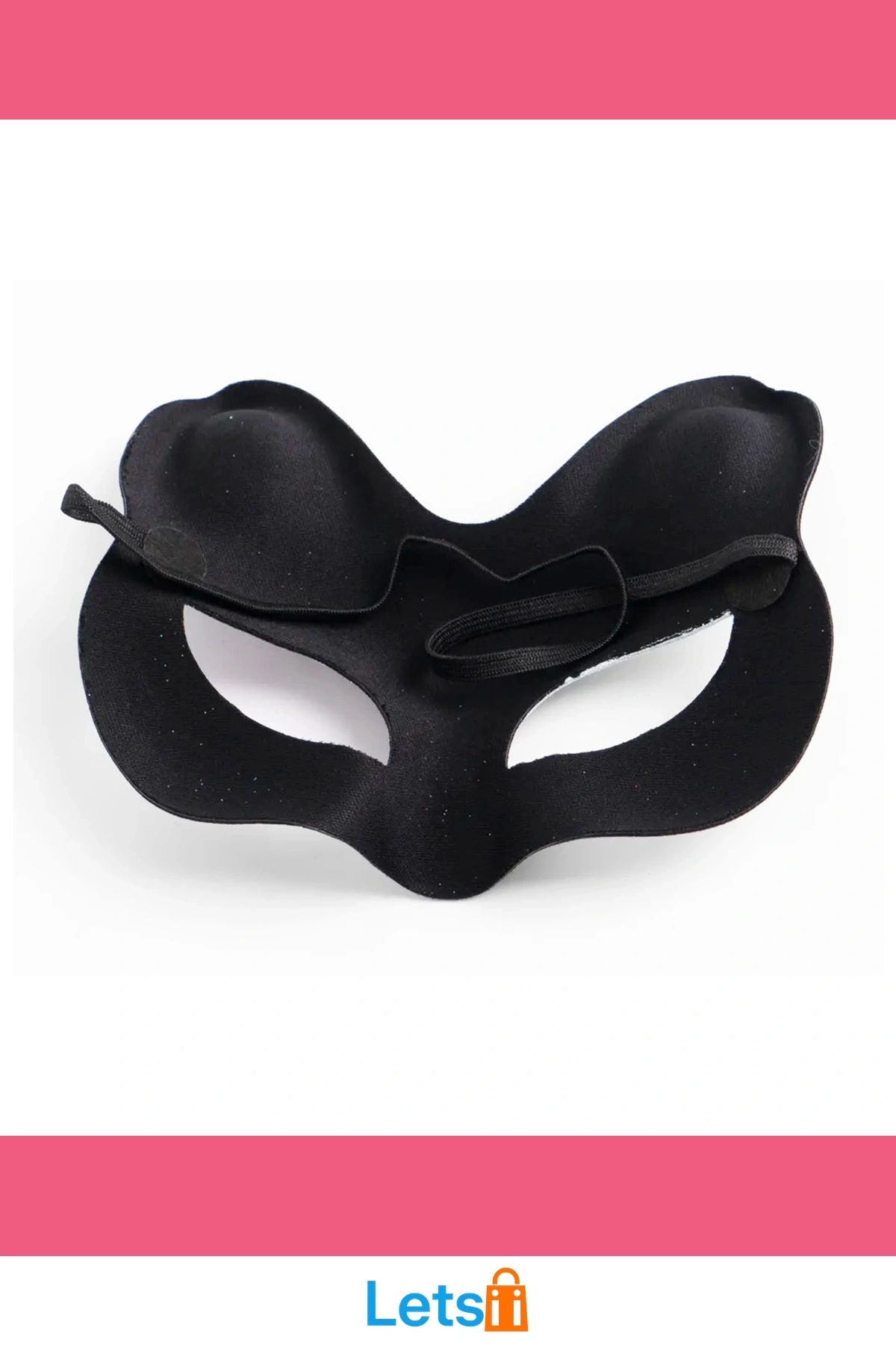 Siyah Süet Kaplama Gümüş Yeşil Simli Kedi Maskesi