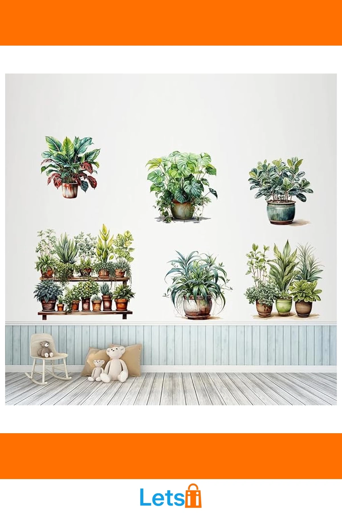 Raflı Bitki Tasarımlı Yapışkanlı Sticker 20x30 cm 3 Adet