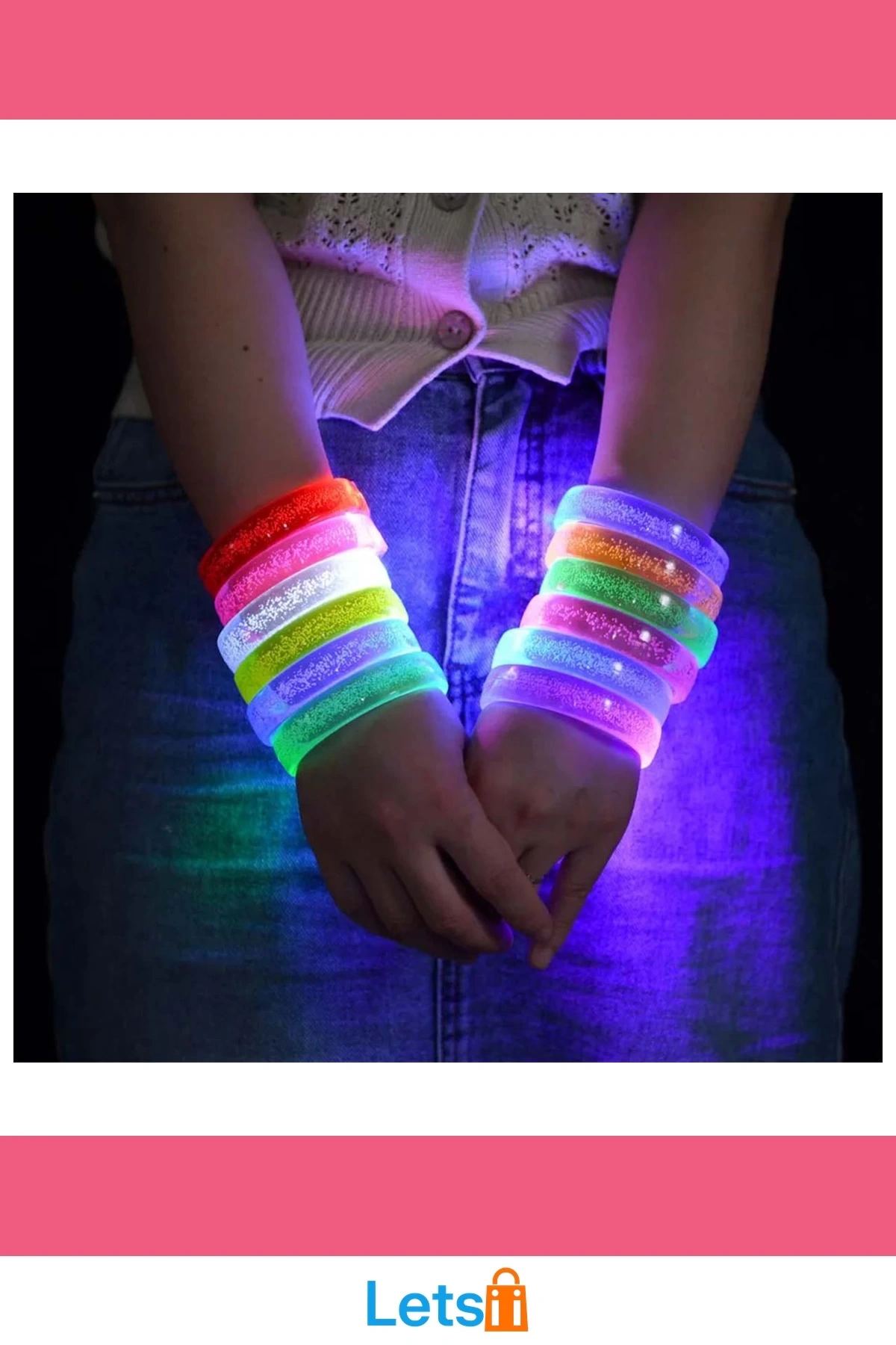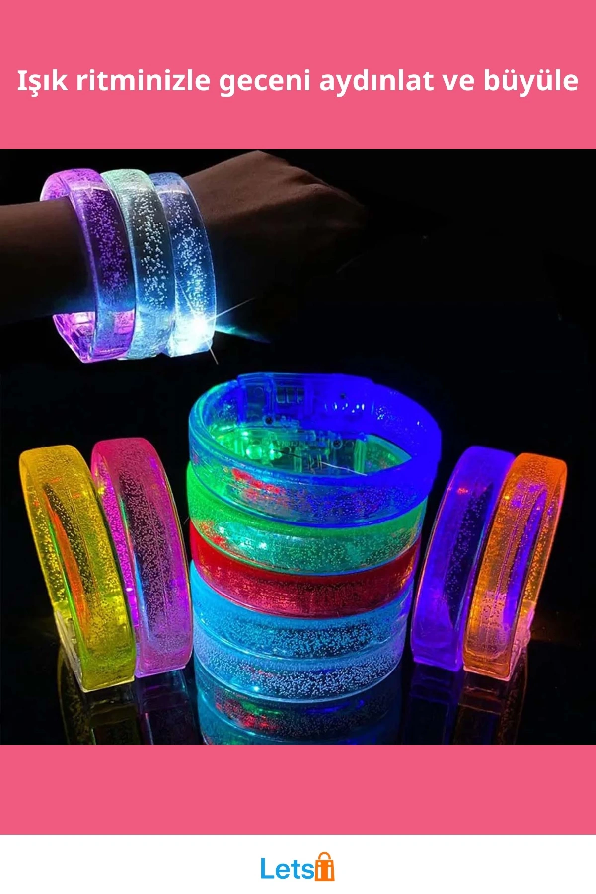 Pembe LED Işıklı Baskı Yapılabilen Pilli Bileklik Bilezik 1,5 cm