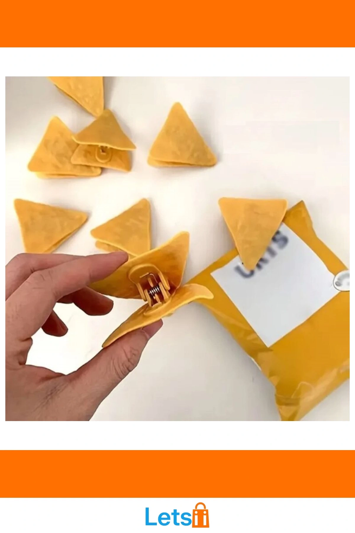 Letsii'nin üçgen cips şeklindeki poşet klipsleri, hem işlevsel hem de şık bir tasarıma sahiptir.