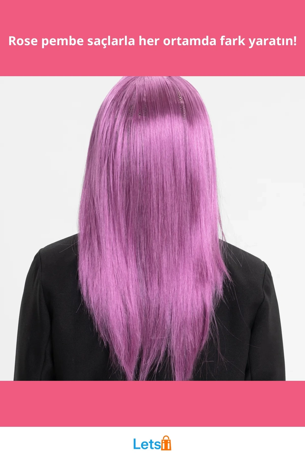 Uzun Rose Pembe Düz Kesim Sentetik Peruk Günlük ve Özel Etkinlikler İçin