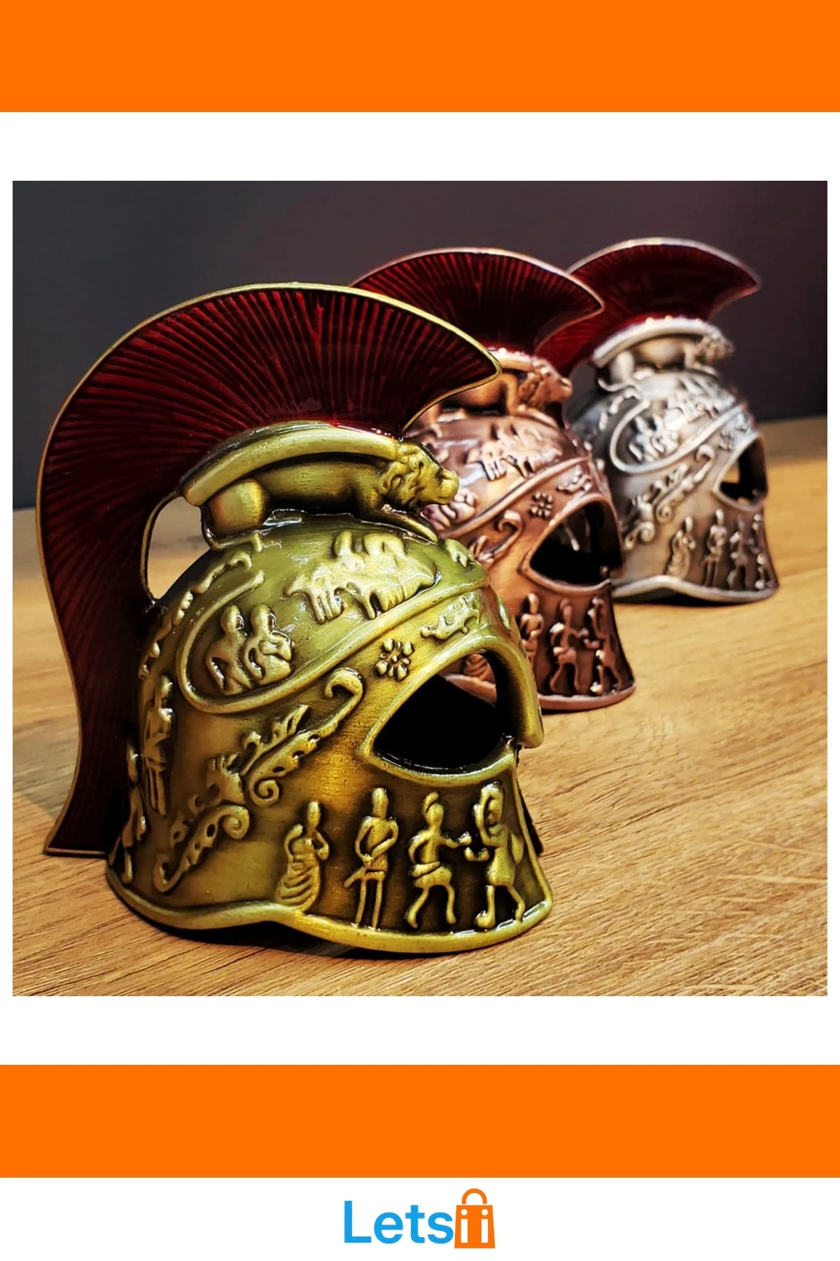 Metal dekoratif şövalye miğferi, şıklığı ve zarafeti bir arada sunuyor.