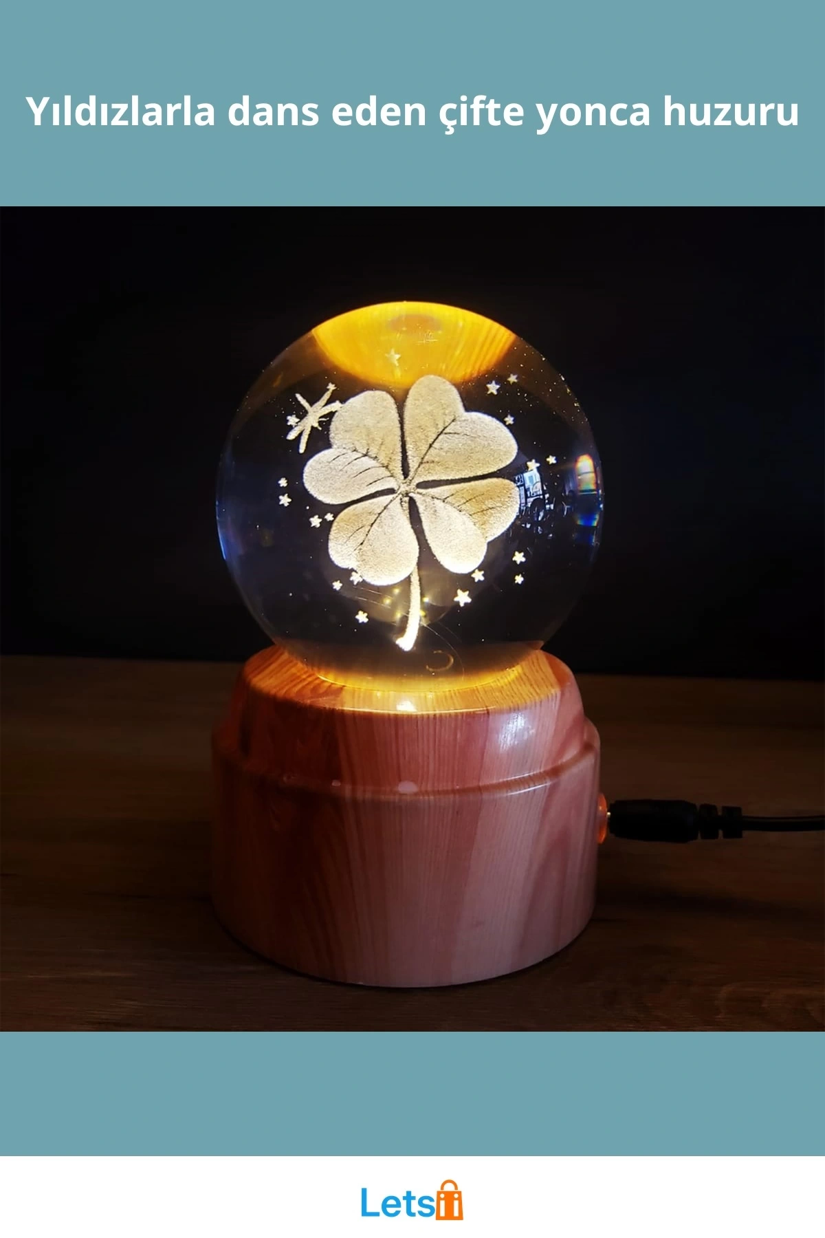 Zarif bir dokunuş: Yonca tasarımlı bu cam küre, bulunduğunuz ortama estetik katar.