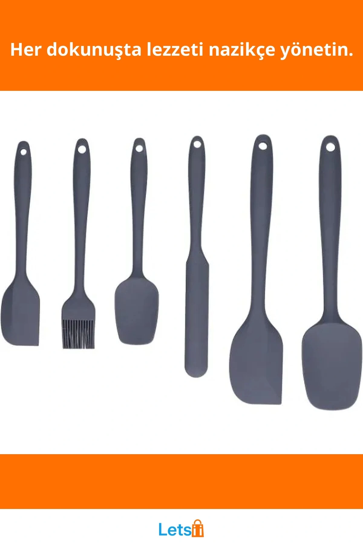 Set içerisinde 6 farklı silikon spatula ve fırça yer alıyor.